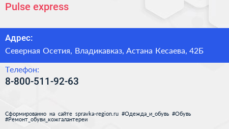 Pulse express по адресу Северная Осетия, Владикавказ, Астана Кесаева, 42Б в дальнейшем Организация, размещена в следующих категориях: