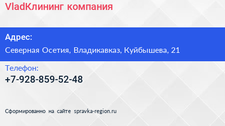 VladКлининг, компания по адресу Северная Осетия, Владикавказ, Куйбышева, 21 в дальнейшем Организация, размещена в следующих категориях: