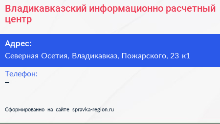 Владикавказский информационно-расчетный центр по адресу Северная Осетия, Владикавказ, Пожарского, 23 к1 в дальнейшем Организация, размещена в следующих категориях: