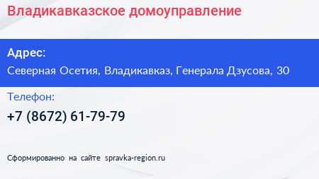 Владикавказское домоуправление по адресу Северная Осетия, Владикавказ, Генерала Дзусова, 30 в дальнейшем Организация, размещена в следующих категориях: