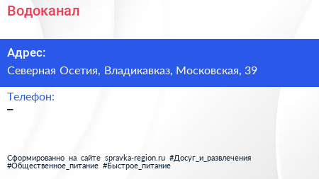 Водоканал по адресу Северная Осетия, Владикавказ, Московская, 39 в дальнейшем Организация, размещена в следующих категориях: