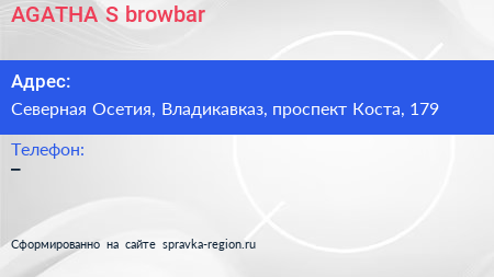 AGATHA`S browbar по адресу Северная Осетия, Владикавказ, проспект Коста, 179 в дальнейшем Организация, размещена в следующих категориях: