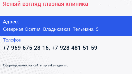 Ясный взгляд, глазная клиника по адресу Северная Осетия, Владикавказ, Тельмана, 5 в дальнейшем Организация, размещена в следующих категориях: