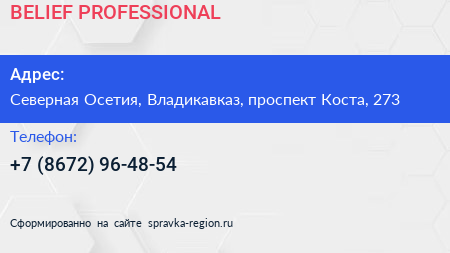 BELIEF PROFESSIONAL по адресу Северная Осетия, Владикавказ, проспект Коста, 273 в дальнейшем Организация, размещена в следующих категориях: