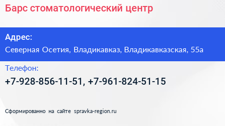 Барс, стоматологический центр по адресу Северная Осетия, Владикавказ, Владикавказская, 55а в дальнейшем Организация, размещена в следующих категориях:
