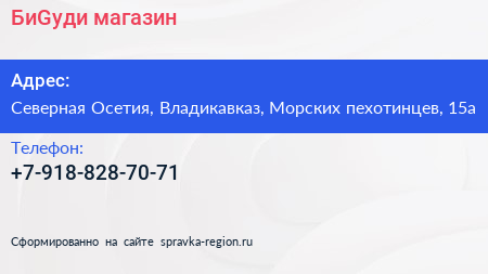 БиGуди, магазин по адресу Северная Осетия, Владикавказ, Морских пехотинцев, 15а в дальнейшем Организация, размещена в следующих категориях: