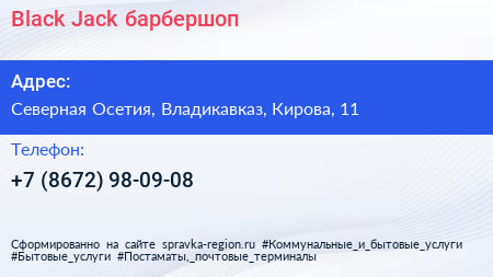 Black Jack, барбершоп по адресу Северная Осетия, Владикавказ, Кирова, 11 в дальнейшем Организация, размещена в следующих категориях: