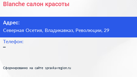 Blanche, салон красоты по адресу Северная Осетия, Владикавказ, Революции, 29 в дальнейшем Организация, размещена в следующих категориях: