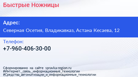 Быстрые Ножницы по адресу Северная Осетия, Владикавказ, Астана Кесаева, 12 в дальнейшем Организация, размещена в следующих категориях: