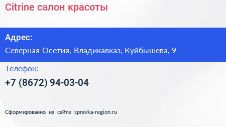 Citrine, салон красоты по адресу Северная Осетия, Владикавказ, Куйбышева, 9 в дальнейшем Организация, размещена в следующих категориях: