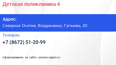 Детская поликлиника №4 по адресу Северная Осетия, Владикавказ, Гугкаева, 20 в дальнейшем Организация, размещена в следующих категориях: