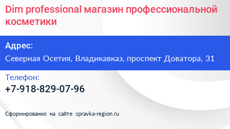 Dim professional, магазин профессиональной косметики по адресу Северная Осетия, Владикавказ, проспект Доватора, 31 в дальнейшем Организация, размещена в следующих категориях: