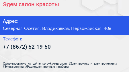 Эдем, салон красоты по адресу Северная Осетия, Владикавказ, Первомайская, 40в в дальнейшем Организация, размещена в следующих категориях: