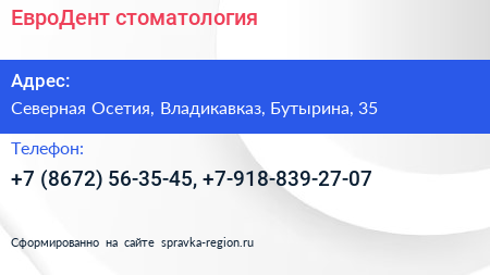 ЕвроДент, стоматология по адресу Северная Осетия, Владикавказ, Бутырина, 35 в дальнейшем Организация, размещена в следующих категориях: