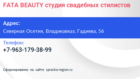 FATA BEAUTY, студия свадебных стилистов по адресу Северная Осетия, Владикавказ, Гадиева, 56 в дальнейшем Организация, размещена в следующих категориях: