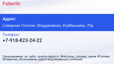 Faberlic по адресу Северная Осетия, Владикавказ, Куйбышева, 70а в дальнейшем Организация, размещена в следующих категориях: