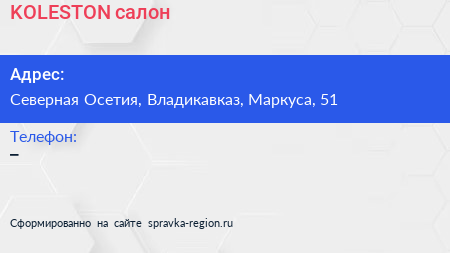 KOLESTON, салон по адресу Северная Осетия, Владикавказ, Маркуса, 51 в дальнейшем Организация, размещена в следующих категориях: