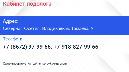 Кабинет подолога по адресу Северная Осетия, Владикавказ, Тамаева, 9 в дальнейшем Организация, размещена в следующих категориях: