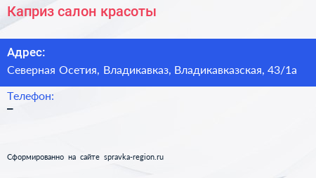 Каприз, салон красоты по адресу Северная Осетия, Владикавказ, Владикавказская, 43/1а в дальнейшем Организация, размещена в следующих категориях: