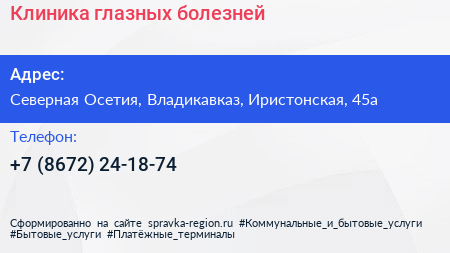 Клиника глазных болезней по адресу Северная Осетия, Владикавказ, Иристонская, 45а в дальнейшем Организация, размещена в следующих категориях: