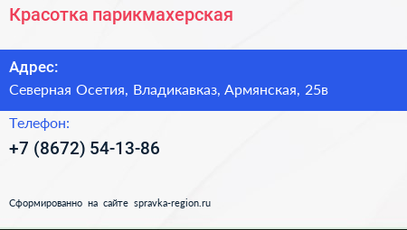 Красотка, парикмахерская по адресу Северная Осетия, Владикавказ, Армянская, 25в в дальнейшем Организация, размещена в следующих категориях: