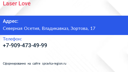 Laser Love по адресу Северная Осетия, Владикавказ, Зортова, 17 в дальнейшем Организация, размещена в следующих категориях: