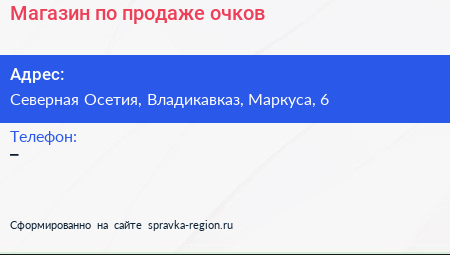 Магазин по продаже очков по адресу Северная Осетия, Владикавказ, Маркуса, 6 в дальнейшем Организация, размещена в следующих категориях:
