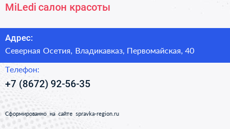 MiLedi, салон красоты по адресу Северная Осетия, Владикавказ, Первомайская, 40 в дальнейшем Организация, размещена в следующих категориях: