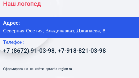 Наш логопед по адресу Северная Осетия, Владикавказ, Джанаева, 8 в дальнейшем Организация, размещена в следующих категориях: