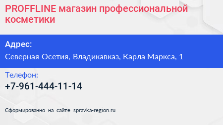 PROFFLINE, магазин профессиональной косметики по адресу Северная Осетия, Владикавказ, Карла Маркса, 1 в дальнейшем Организация, размещена в следующих категориях:
