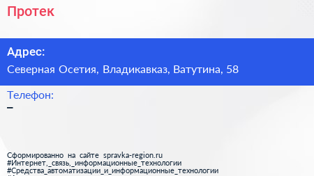 Протек по адресу Северная Осетия, Владикавказ, Ватутина, 58 в дальнейшем Организация, размещена в следующих категориях: