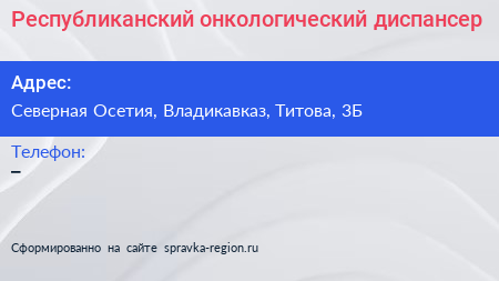 Республиканский онкологический диспансер по адресу Северная Осетия, Владикавказ, Титова, 3Б в дальнейшем Организация, размещена в следующих категориях: