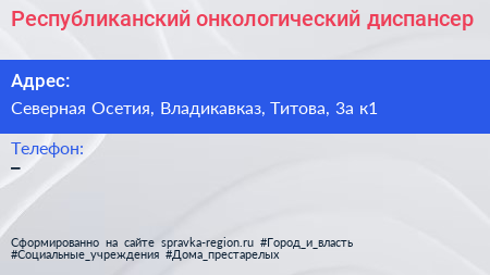 Республиканский онкологический диспансер по адресу Северная Осетия, Владикавказ, Титова, 3а к1 в дальнейшем Организация, размещена в следующих категориях: