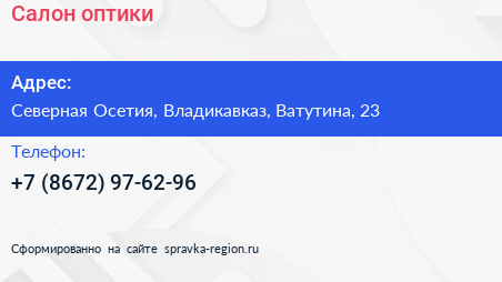 Салон оптики по адресу Северная Осетия, Владикавказ, Ватутина, 23 в дальнейшем Организация, размещена в следующих категориях: