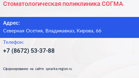 Стоматологическая поликлиника, СОГМА по адресу Северная Осетия, Владикавказ, Кирова, 66 в дальнейшем Организация, размещена в следующих категориях: