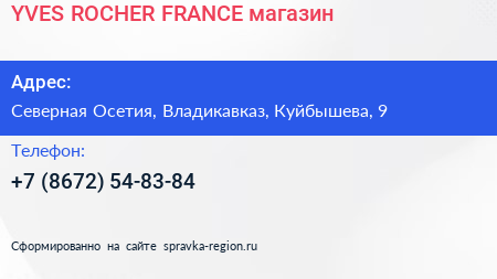 YVES ROCHER FRANCE, магазин по адресу Северная Осетия, Владикавказ, Куйбышева, 9 в дальнейшем Организация, размещена в следующих категориях: