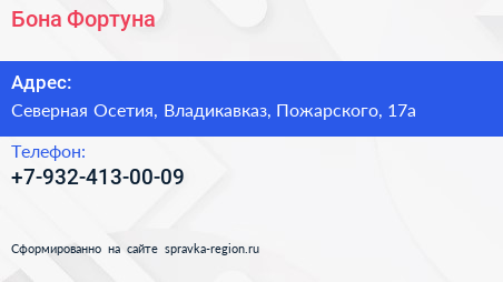 Бона Фортуна по адресу Северная Осетия, Владикавказ, Пожарского, 17а в дальнейшем Организация, размещена в следующих категориях: