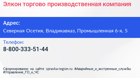 Элкон, торгово-производственная компания по адресу Северная Осетия, Владикавказ, Промышленная 6-я, 5 в дальнейшем Организация, размещена в следующих категориях: