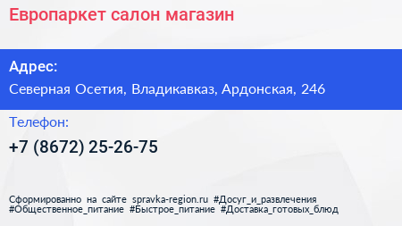 Европаркет, салон-магазин по адресу Северная Осетия, Владикавказ, Ардонская, 246 в дальнейшем Организация, размещена в следующих категориях: