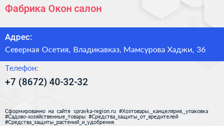 Фабрика Окон, салон по адресу Северная Осетия, Владикавказ, Мамсурова Хаджи, 36 в дальнейшем Организация, размещена в следующих категориях: