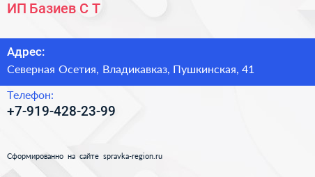 ИП Базиев С.Т. по адресу Северная Осетия, Владикавказ, Пушкинская, 41 в дальнейшем Организация, размещена в следующих категориях: