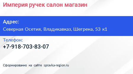 Империя ручек, салон магазин по адресу Северная Осетия, Владикавказ, Шегрена, 53 к1 в дальнейшем Организация, размещена в следующих категориях: