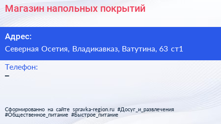 Магазин напольных покрытий по адресу Северная Осетия, Владикавказ, Ватутина, 63 ст1 в дальнейшем Организация, размещена в следующих категориях: