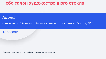 Небо, салон художественного стекла по адресу Северная Осетия, Владикавказ, проспект Коста, 215 в дальнейшем Организация, размещена в следующих категориях: