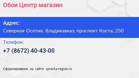 Обои Центр, магазин по адресу Северная Осетия, Владикавказ, проспект Коста, 250 в дальнейшем Организация, размещена в следующих категориях:
