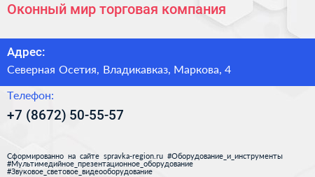 Оконный мир, торговая компания по адресу Северная Осетия, Владикавказ, Маркова, 4 в дальнейшем Организация, размещена в следующих категориях: