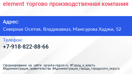 element, торгово-производственная компания по адресу Северная Осетия, Владикавказ, Мамсурова Хаджи, 52 в дальнейшем Организация, размещена в следующих категориях:
