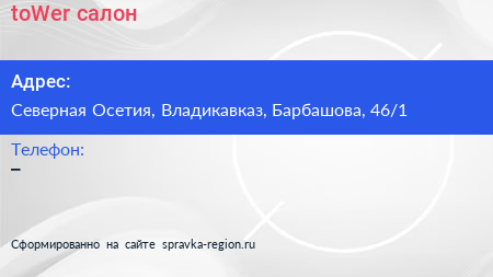 toWer, салон по адресу Северная Осетия, Владикавказ, Барбашова, 46/1 в дальнейшем Организация, размещена в следующих категориях: