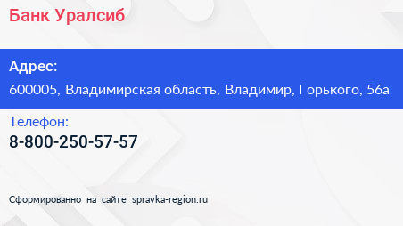 Банк Уралсиб по адресу 600005, Владимирская область, Владимир, Горького, 56а в дальнейшем Организация, размещена в следующих категориях:
