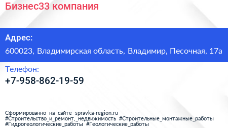 Бизнес33, компания по адресу 600023, Владимирская область, Владимир, Песочная, 17а в дальнейшем Организация, размещена в следующих категориях: